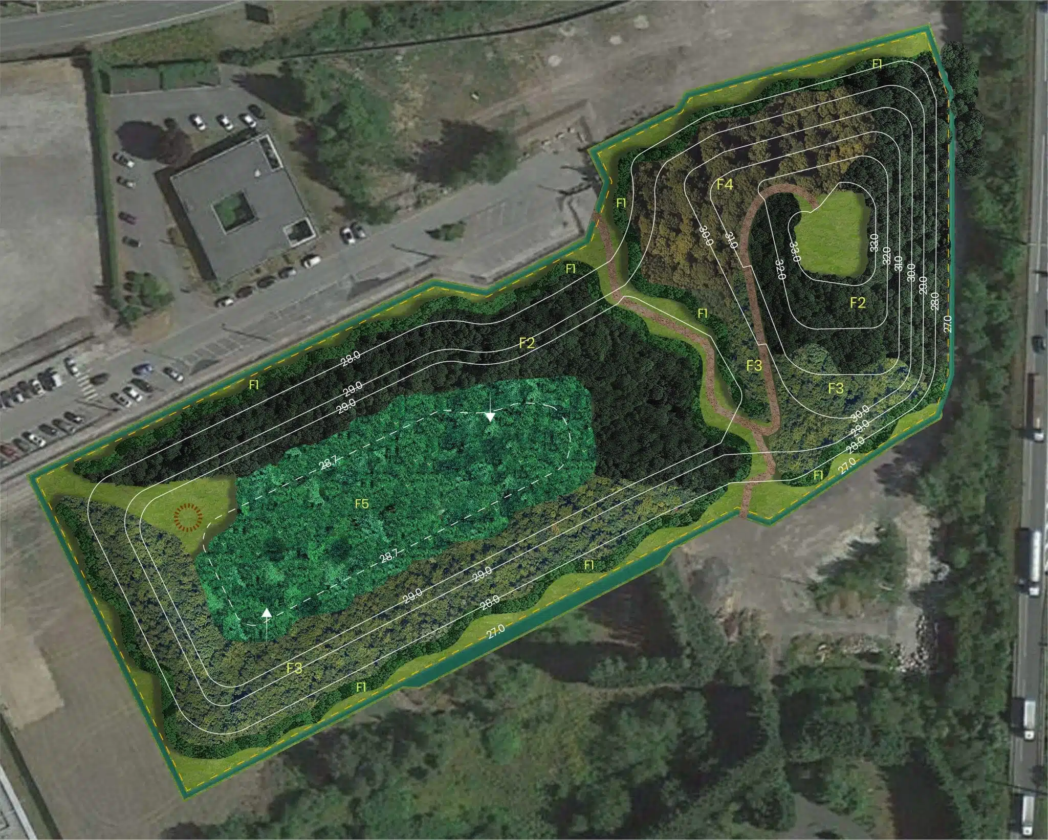 Using the neighbouring site as a “nursery” for the urban forest: trees and shrubs have been removed and replanted on the site of the future urban forest.