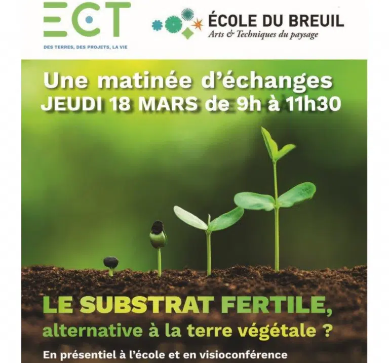 Le substrat fertile, alternative à la terre végétale ? Matinée d’échanges proposée par L’Ecole Du Breuil, l’école d’horticulture de la Ville de Paris et ECT ce jeudi 18 mars, de 9h à 11h30. L’événement était ouvert, en présentiel aux étudiants de l’Ecole du Breuil. Et à tous en visio-conférence, sur inscription. Les intervenants ont présenté retours d’expérience et cas concrets d’utilisation de ce support de culture. Un programme qui incluait des temps d’échanges Accueil des participants Introduction d’Alexandre Hennekinne, directeur de l’Ecole du Breuil Introduction de Laurent Mogno, président d’ECT Premiers retours d’expérimentation : « Composition du substrat fertile et cortège végétal » Camille Soulard et Flore Diradourian, Responsables…